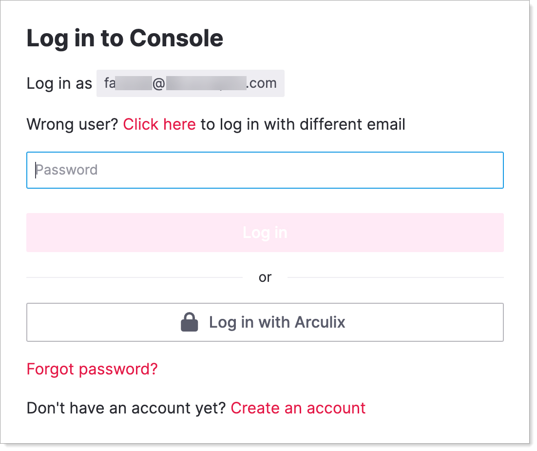 With the first-time login, enter your password to link your profile and click Login with Arculix.