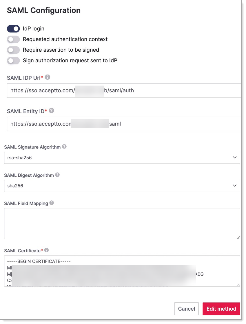 https://sso.acceptto.com/<myorganization>/samlSAML Signature Algorithm