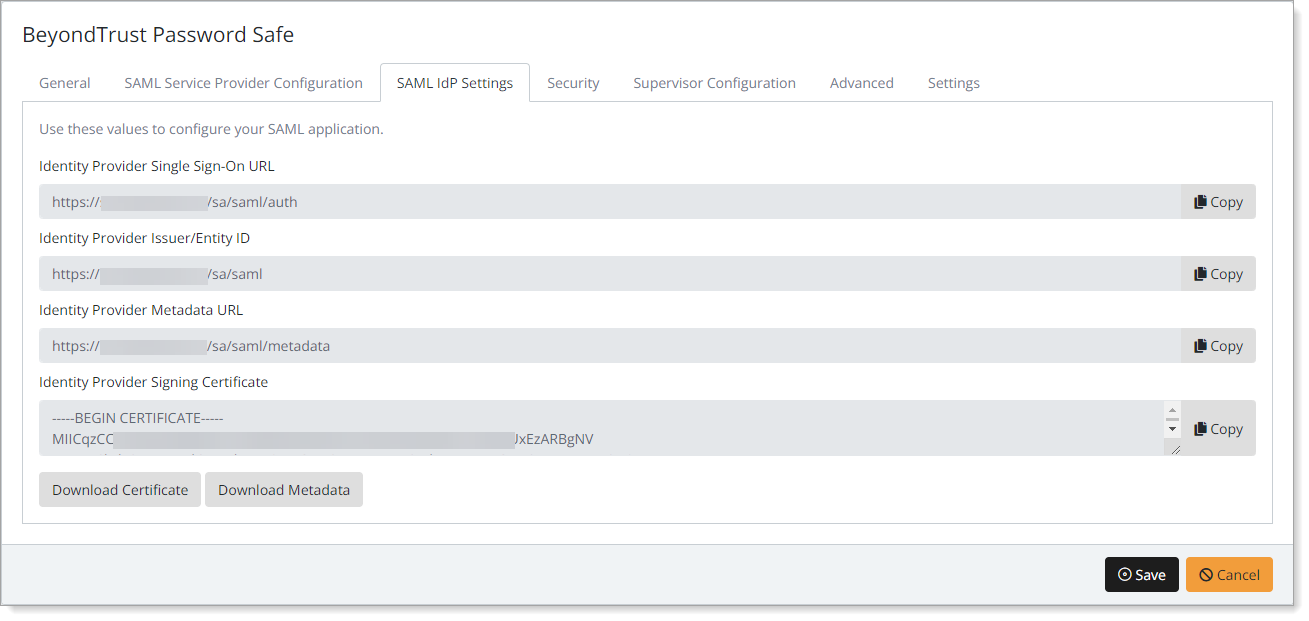 In this section, you'll configure BeyondTrust as a service provider (SP).