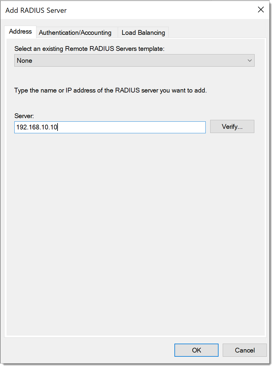 In the Address > Server section, enter the IP address of the Arculix RADIUS Server.