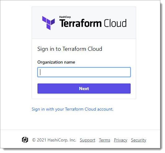 Go to the Terraform Cloud SSO login page and enter your organization name.