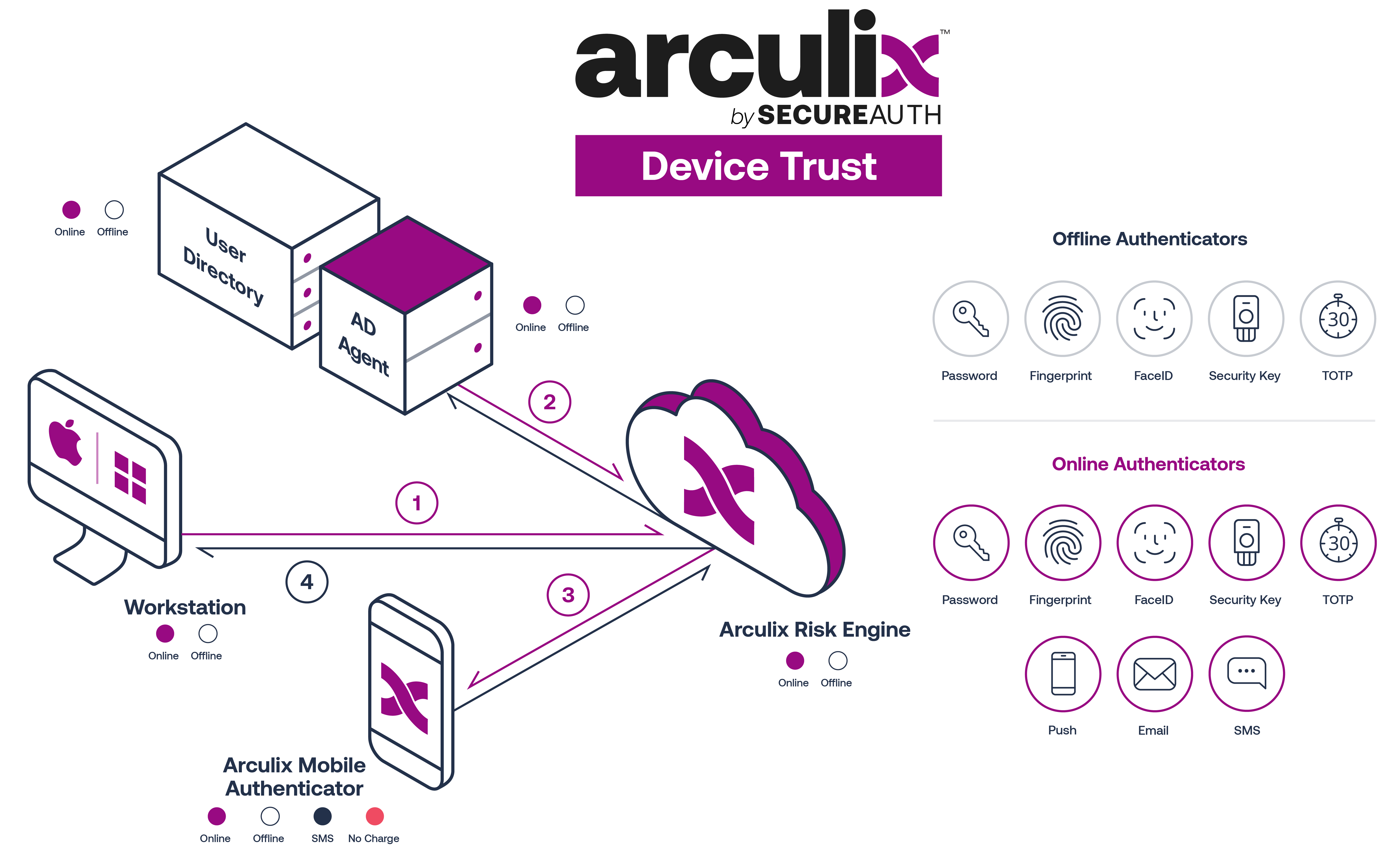 Below is a flow diagram of the expected screen when one or more subsystems are offline. Test all available offline authenticators for when workstation, phone, AD and Arculix / AWS are offline.